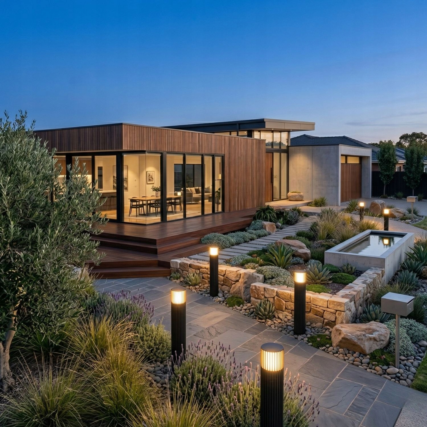 - Strefa tarasowa: Delikatnie doświetla krawędzie tarasu, budując kameralny klimat podczas wieczornego wypoczynku.