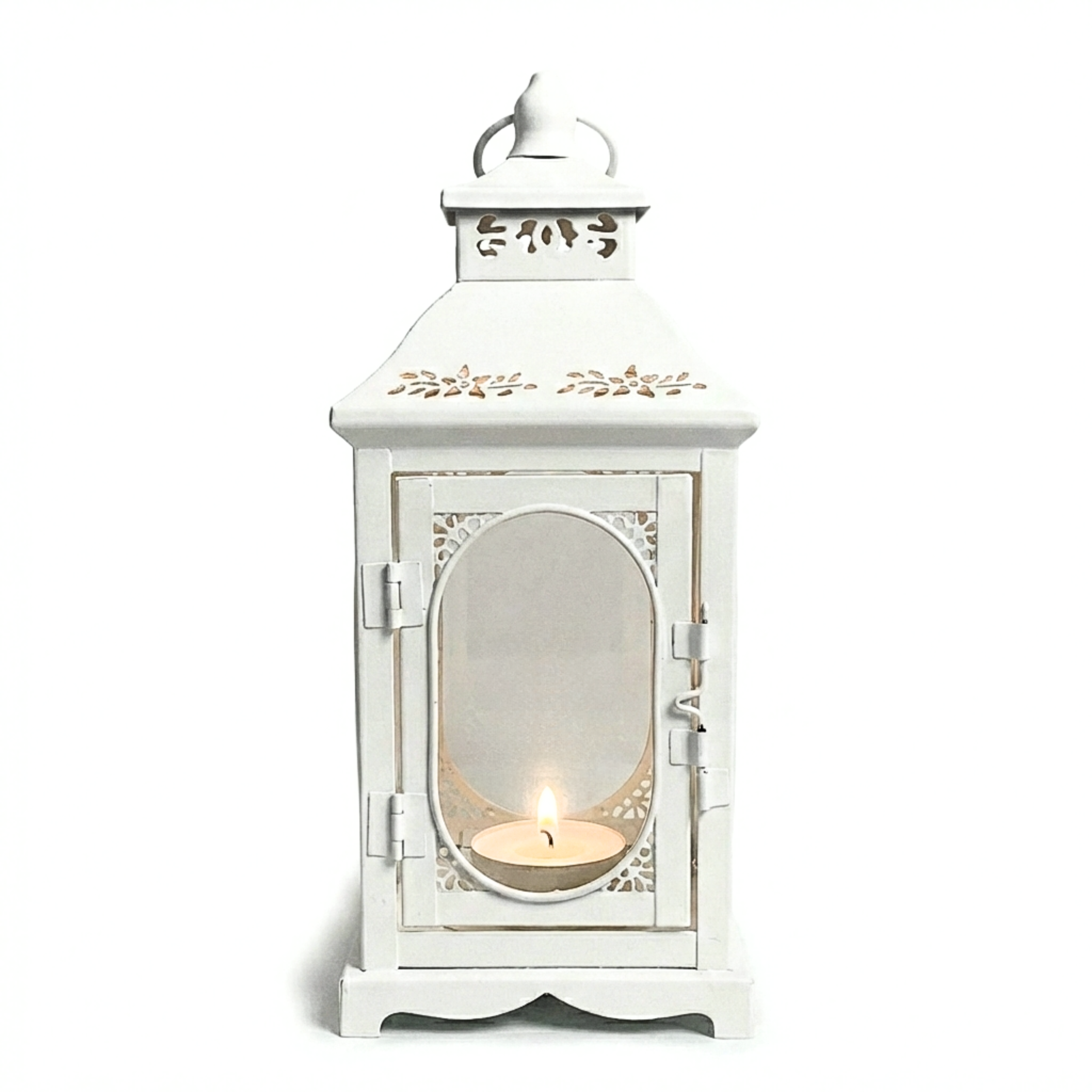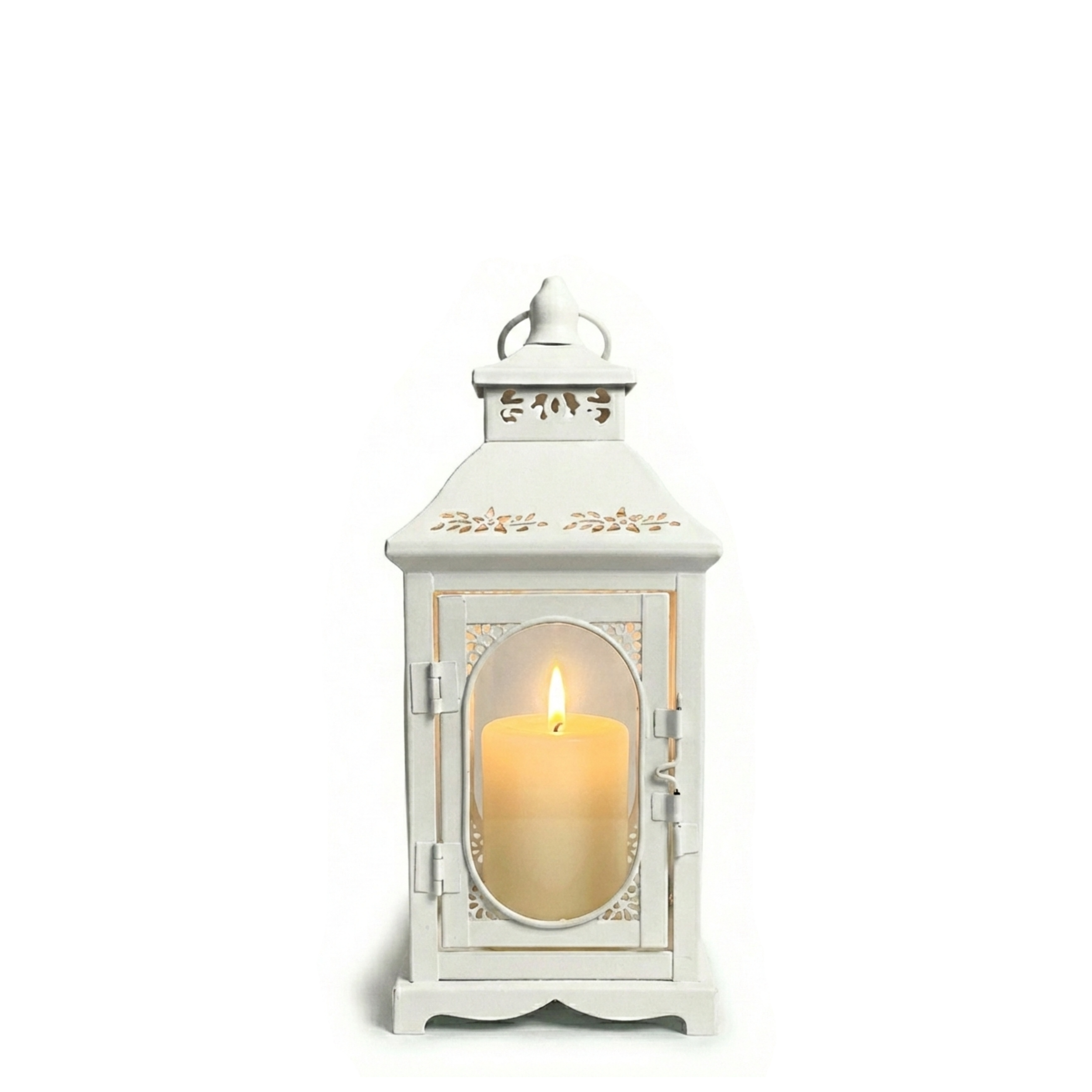 Głównym atutem lampionu ROSEHILL S jest jego ażurowa konstrukcja. Górna kopuła oraz podstawa zostały ozdobione misternymi wycięciami, które w połączeniu z białą barwą tworzą efekt lekkości i świeżości. Styl shabby chic, w którym utrzymany jest produkt, przejawia się w delikatnie przecieranym wykończeniu, nadającym mu autentycznego wyglądu vintage.