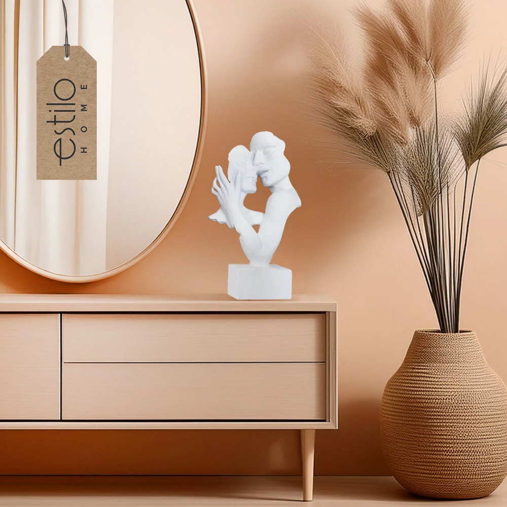 Nowoczesna Figurka Ozdobna – Dekoracyjna Rzeźba Twarze Kochankowie – FaceS Biała