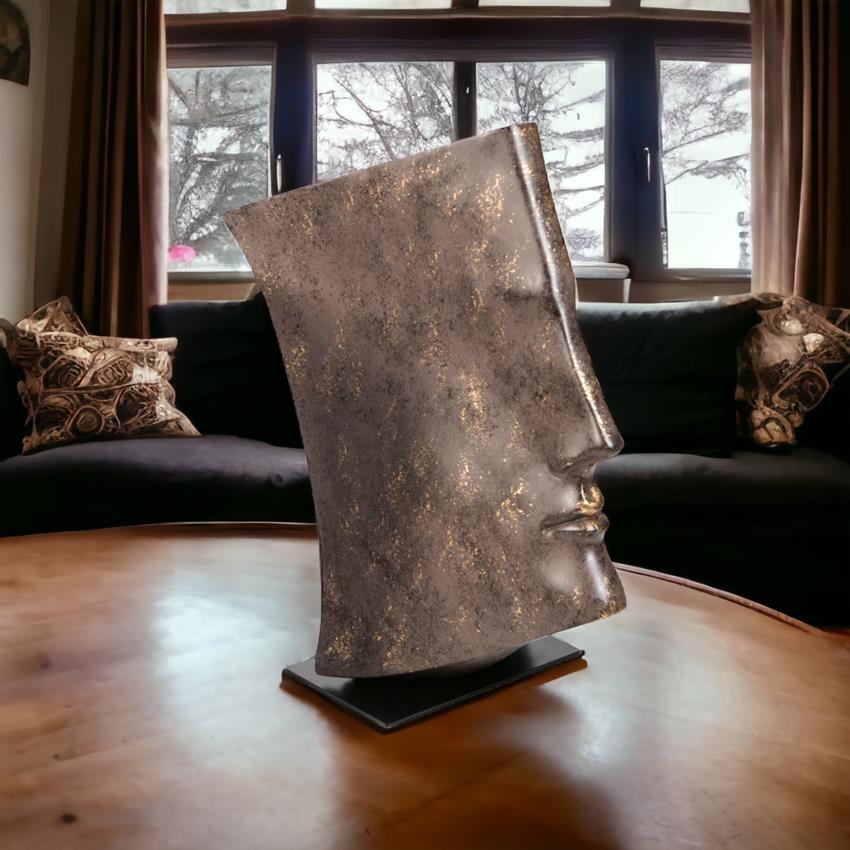 Duża rzeźba dekoracyjna w kolorze miedzi to doskonała dekoracja, która doda uroku Twojemu domowi. Możesz postawić ją na półce, komodzie lub stoliku kawowym, a jej piękny design przyciągnie uwagę Twoich gości. Ta rzeźba dekoracyjna jest idealna do salonu, sypialni lub biura. Dodaj odrobinę elegancji do swojego wnętrza dzięki tej wspaniałej rzeźbie.