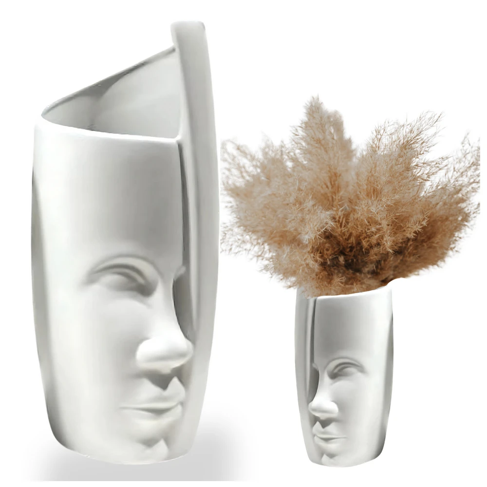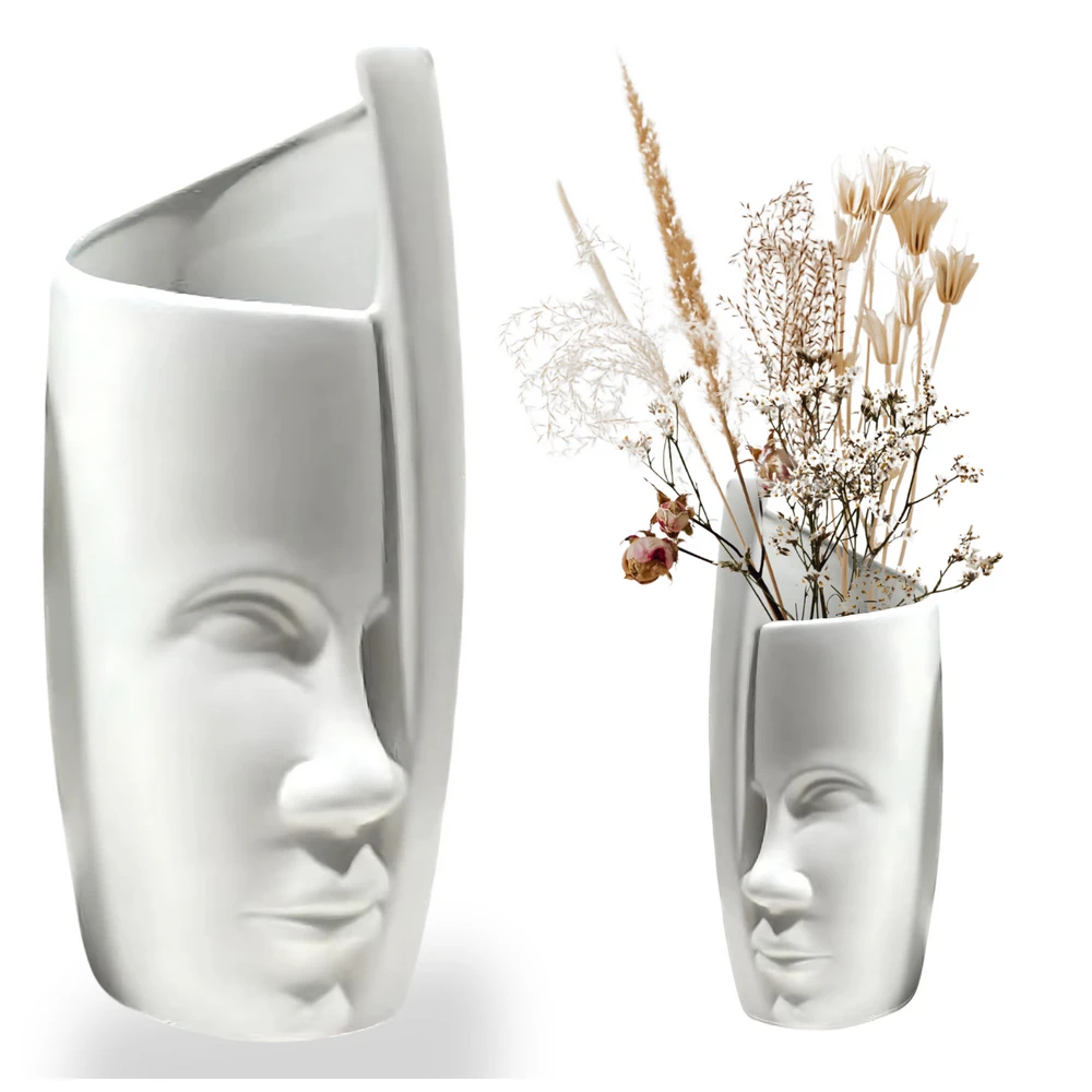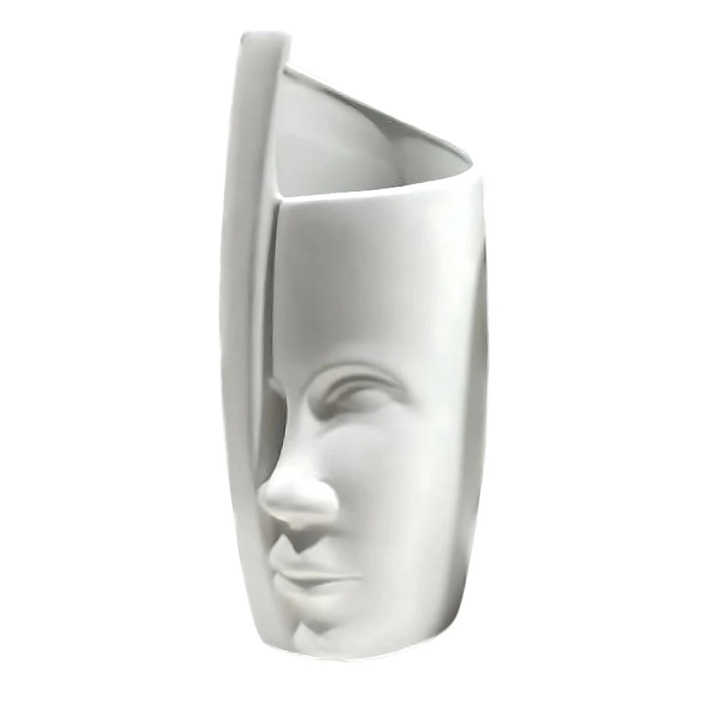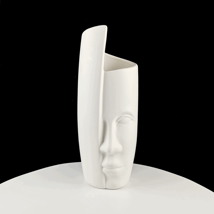 Nowoczesny Wazon Dekoracyjny Ceramiczny Biały Figurka Zawinięta Twarz – 31cm