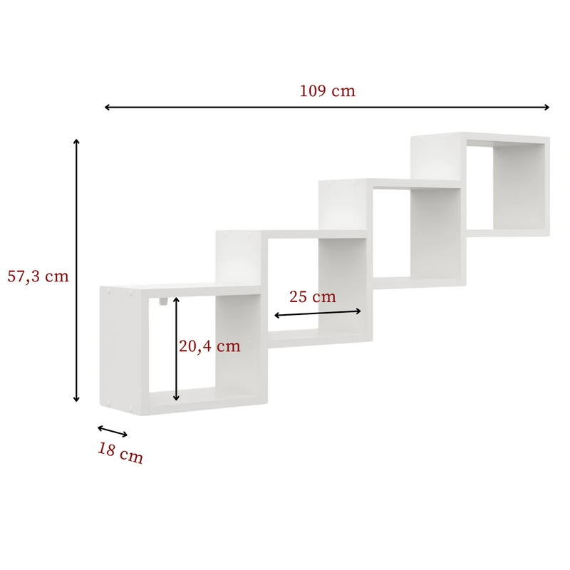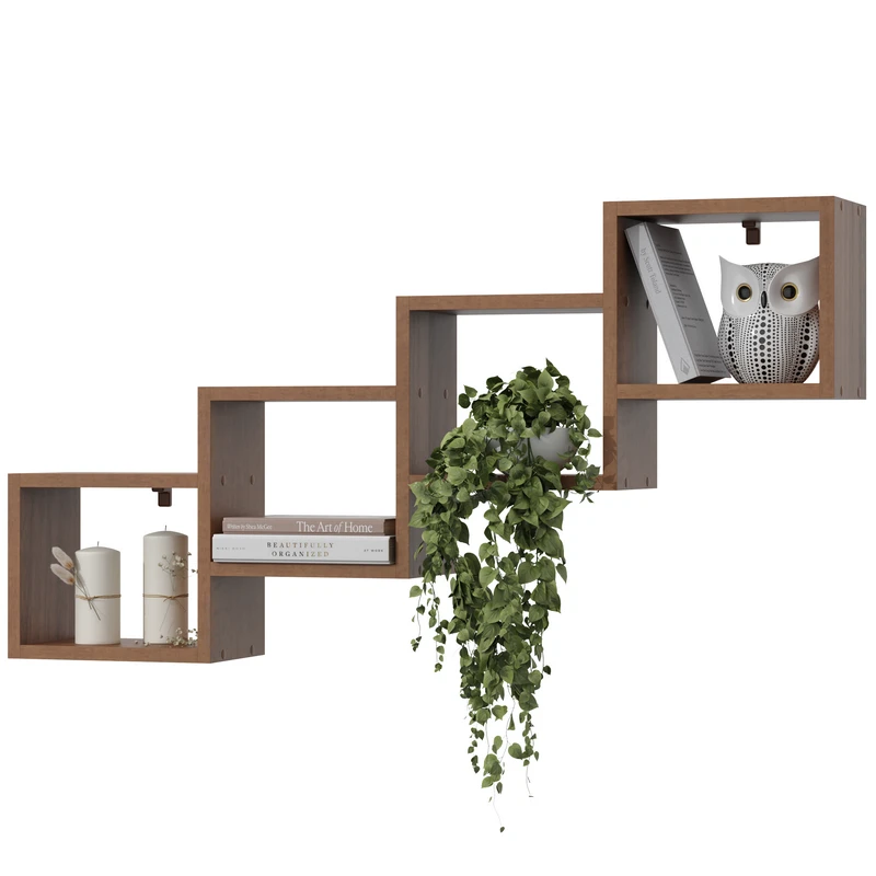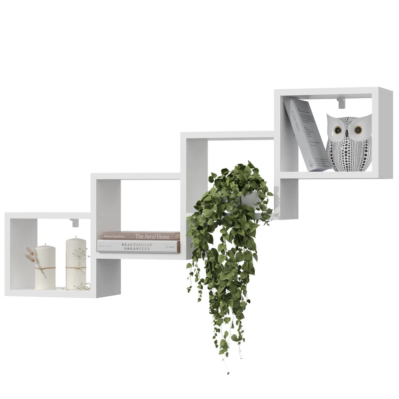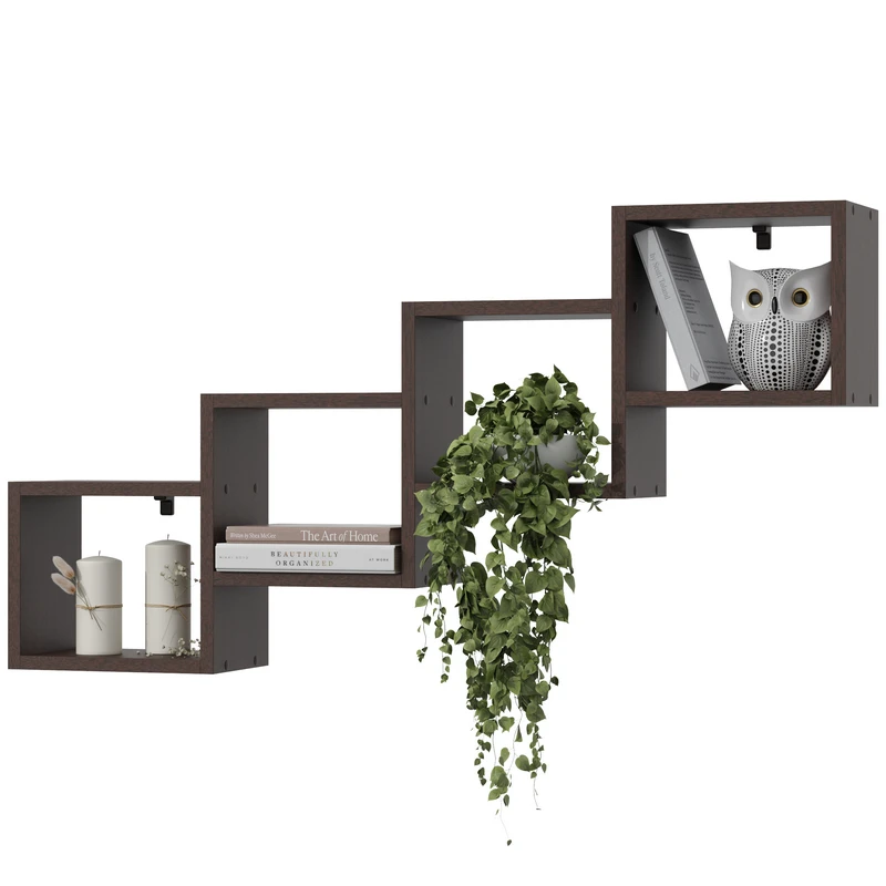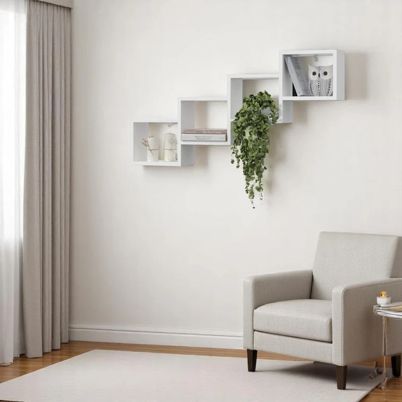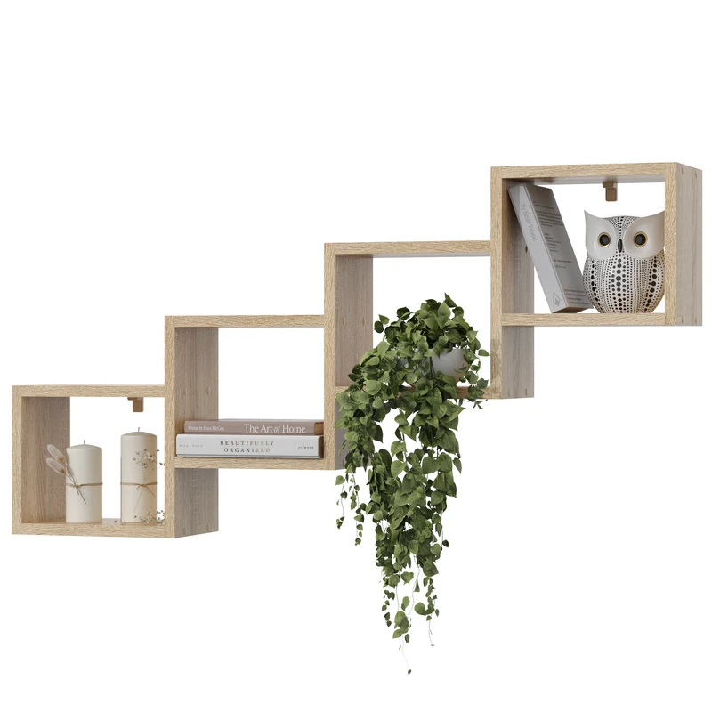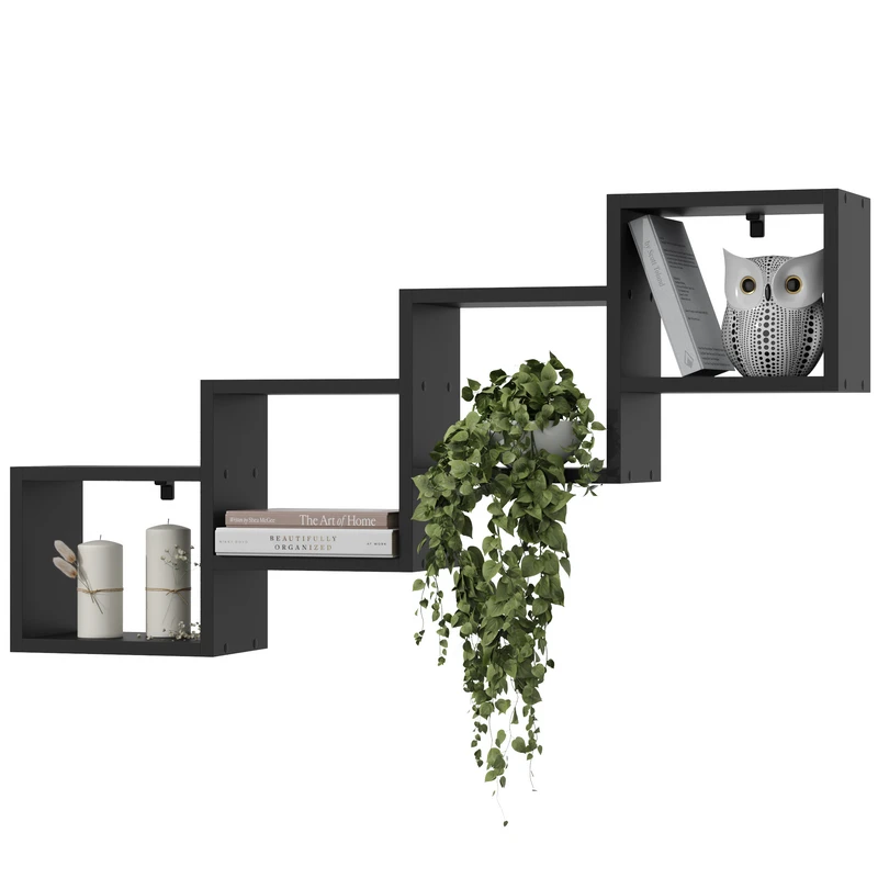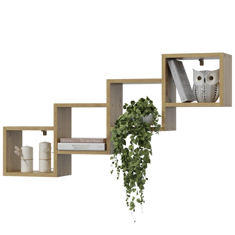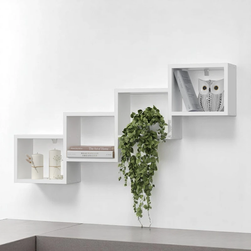 Ta półka ścienna na książki została zaprojektowana z myślą o tym, by pomieścić to, co ważne – książki, ozdoby, rośliny, świece czy ramki na zdjęcia. Każdy z czterech sześcianów pozwala stworzyć unikalną kompozycję, która przyciąga wzrok. To nie tylko praktyczne miejsce do przechowywania, ale też wyjątkowy element dekoracyjny. Geometryczny układ nadaje wnętrzu harmonii i ładu. Doskonale sprawdza się, jako biblioteczka do salonu lub uzupełnienie przestrzeni w domowym biurze. Uniwersalna forma sprawia, że pasuje zarówno do nowoczesnych, jak i klasycznych aranżacji.